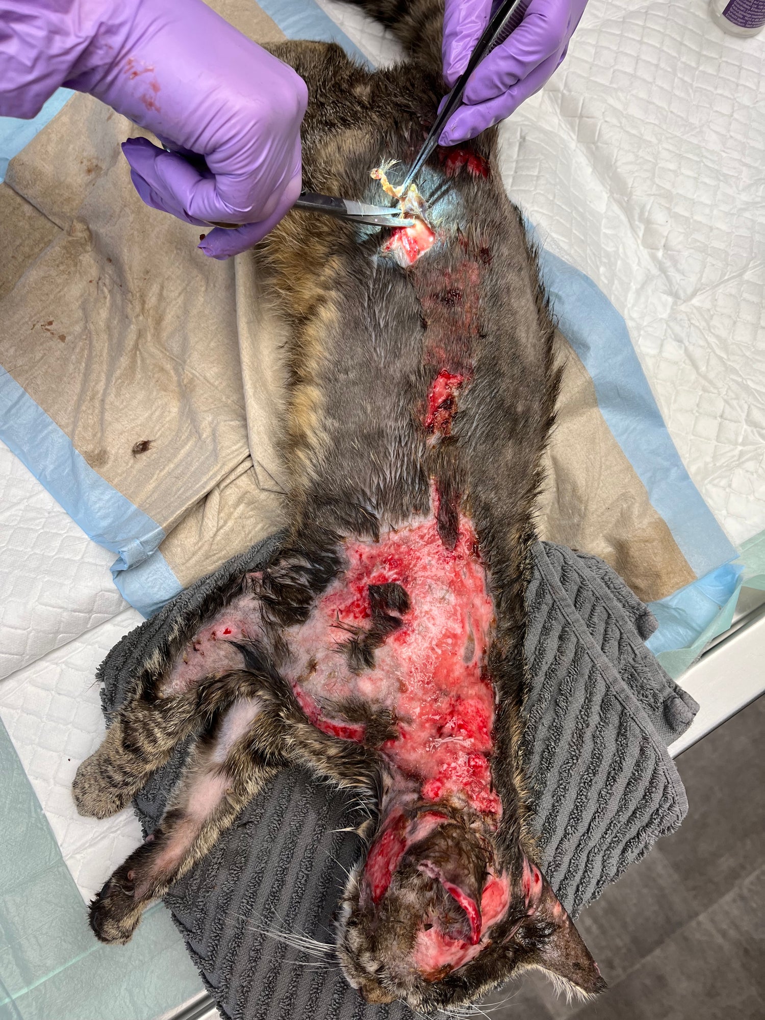 Abtragung der abgestorbenen Haut und Hautorgane unter Narkose